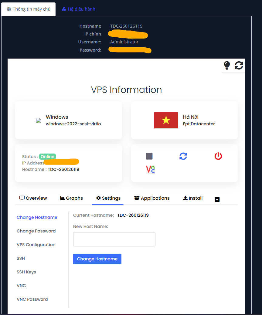 Hướng dẫn sử dụng dịch vụ quản lý VPS của TDCLOUD.